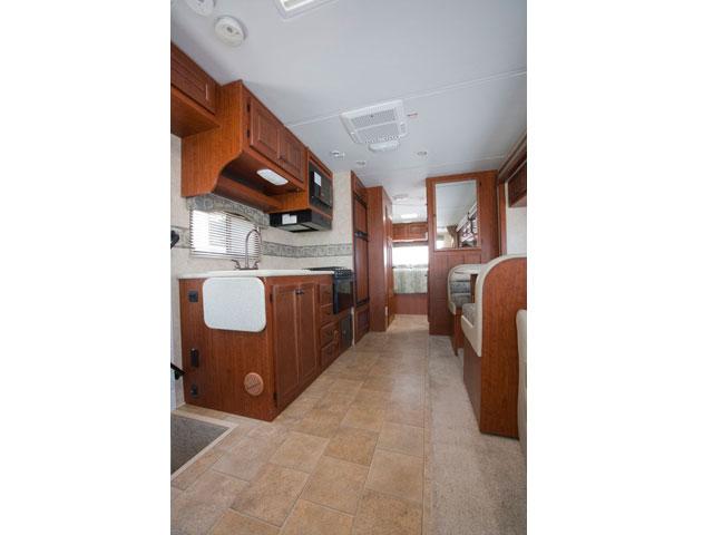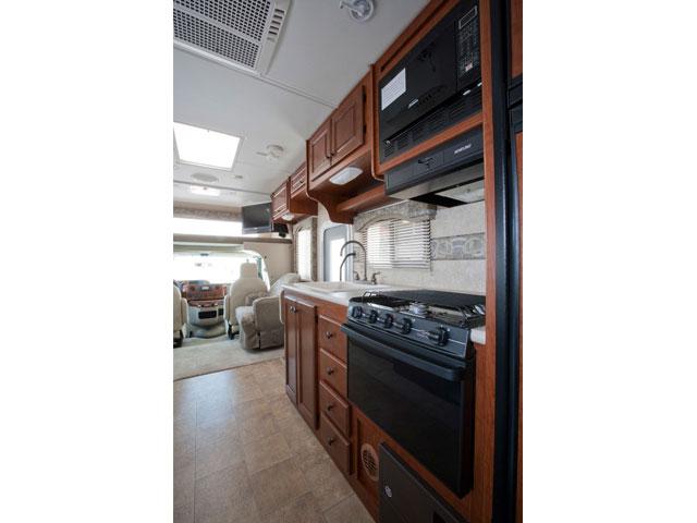 Powered by a V10 engine and automatic transmission with cruise control. AM/FM Radio with CD player, TV/DVD. 4kw Power generator. Cab-over bed (244 x 142cm), a permanent queen size bed (153 x 203cm), the slide out dinette (107 x 185cm) and sofa (104 x 158cm) can be converted into 2 double beds. With the cab-over design and slide out feature this vehicle gives you the flexibility options for your bed configuration and a spacious living area.